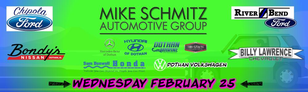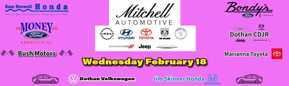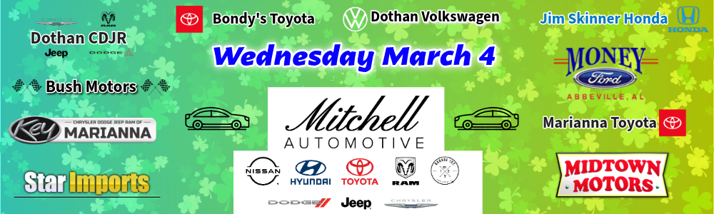 Mitchell Nissan, Mitchell Hyundai, Mitchell Dodge, Toyota of Dothan, Sam Boswell Honda, Bondy's Ford, Bondys Nissan, Star Imports, Bush Motors, and more!! -